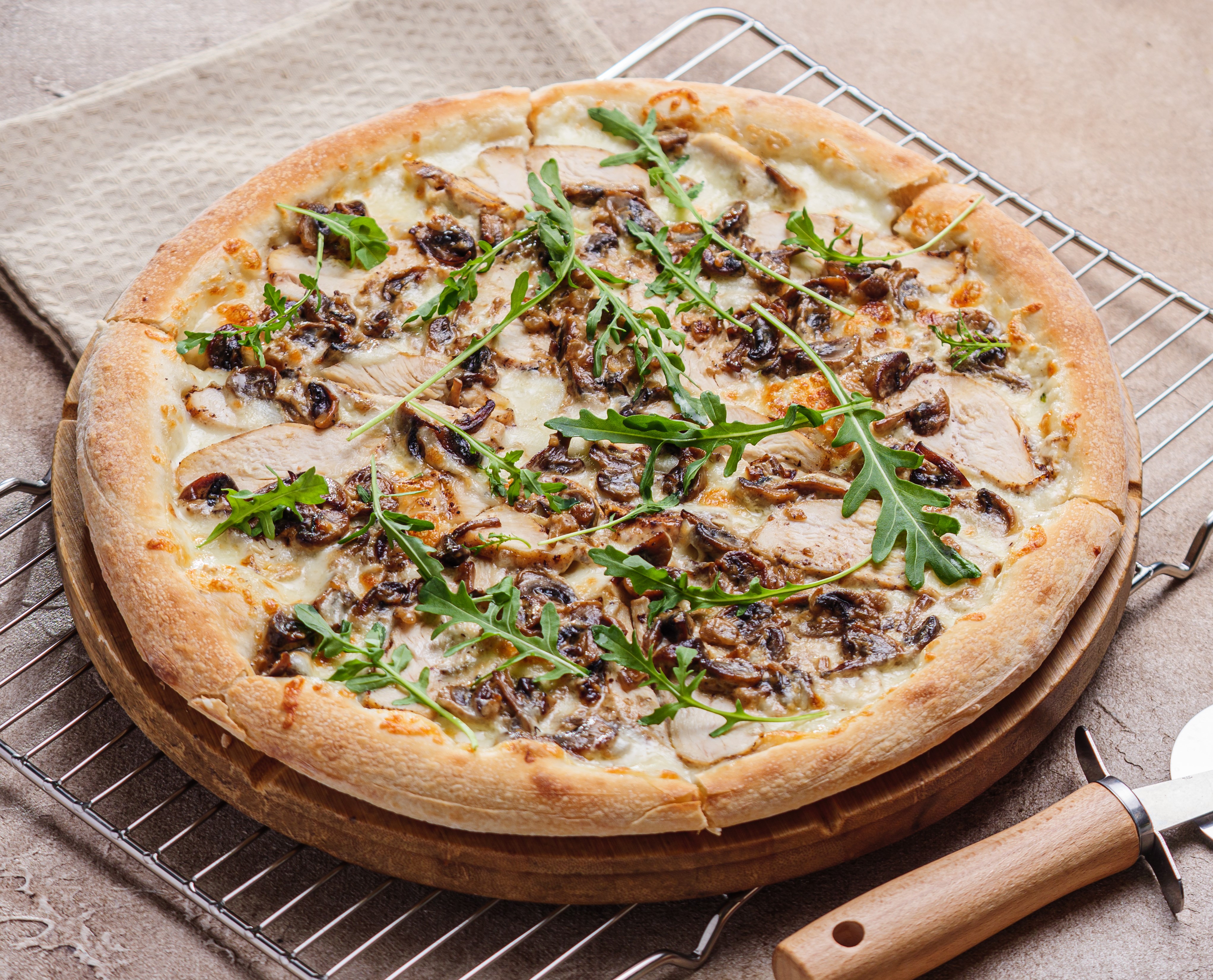 запечённая куриная грудка, шампиньоны, оливковое масло, прованские травы, сыр моцарелла