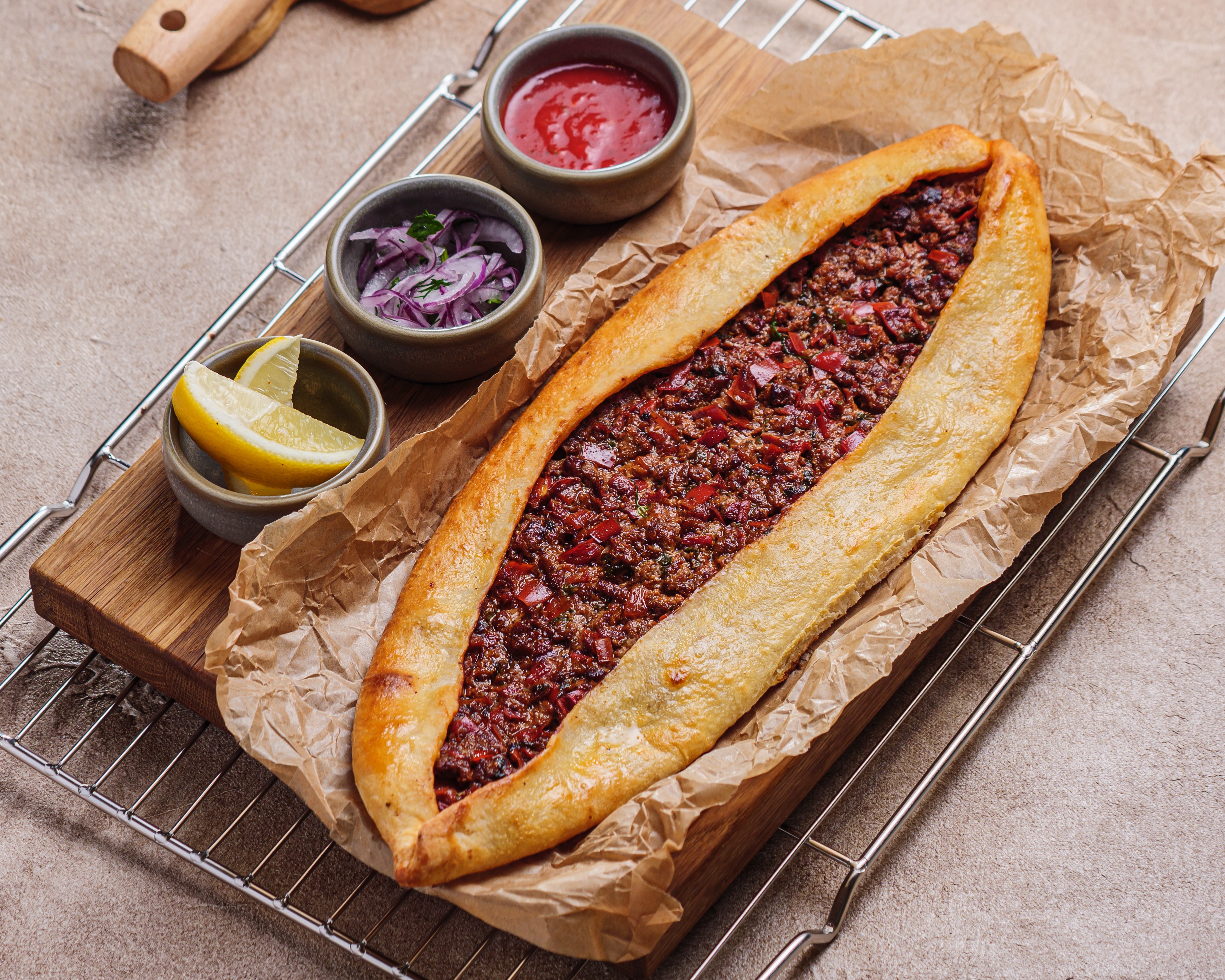 куриная грудка, мясо говядины, колбаски, томаты, перец халапеньо, красный лук, сыр моцарелла