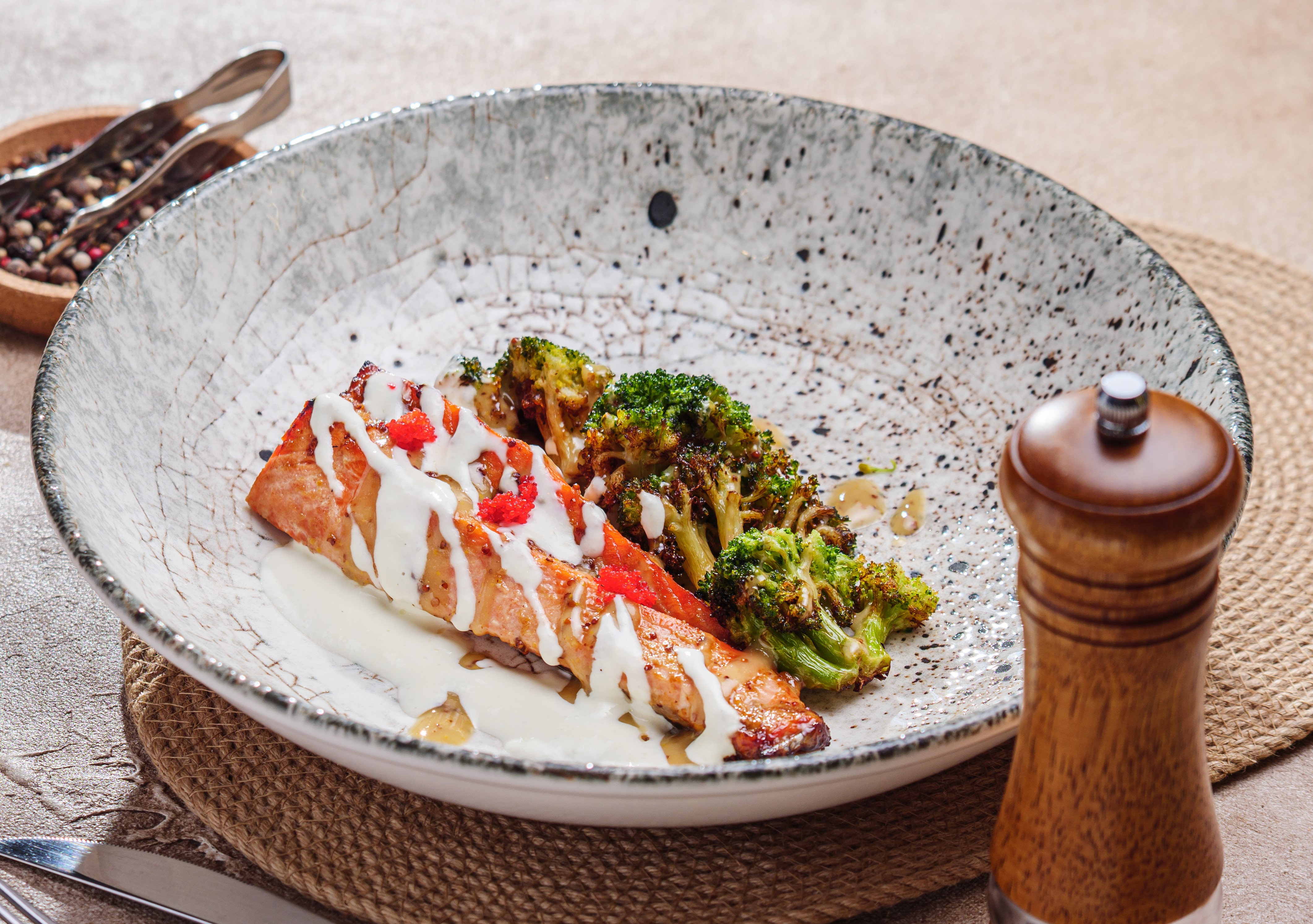 чиабатта, лосось, творожный сыр, соус гуакамоле